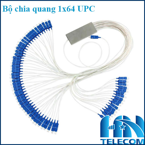 Bộ chia quang 1×64 PLC có kích thước nhỏ, lần lượt với thông số 4mm x 12mm x 60mm và hoạt động trong bước sóng rộng. Nó được cấu tạo từ sợi quang Single – mode hoặc Multi-mode có đường kính lõi là 9um, với 2 chuẩn APC và UPC.