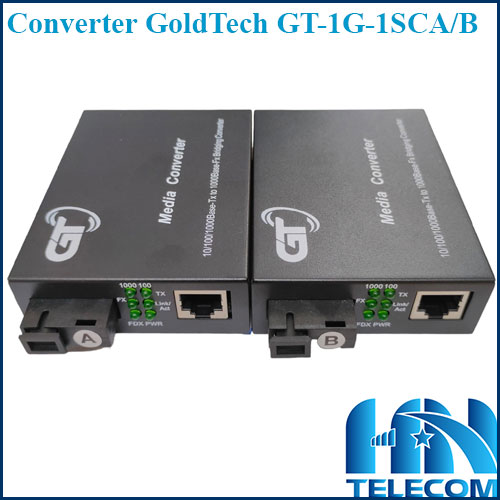 - Converter GoldTech GT-1G-1SCA/B sẽ chuyển tín hiệu điện sang tín hiệu quang sao cho tương thích với cáp sợi quang. Bên đầu còn lại của cáp quang thì một bộ chuyển đổi quang điện thứ 2 sẽ chuyển tín hiệu sẽ trở lại định dạng lúc ban đầu.