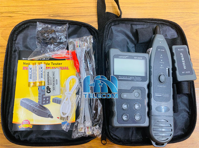 Bộ máy test cáp và dò tìm cáp mạng POE NF-8209 Noyafa gồm những phụ kiện đi kèm sau: