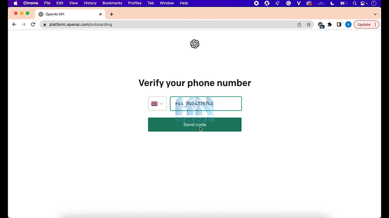 • Bước 12: Quay trở lại Chrome điền số điện thoại và past số điện thoại vừa coppy. Sau đó click Send code